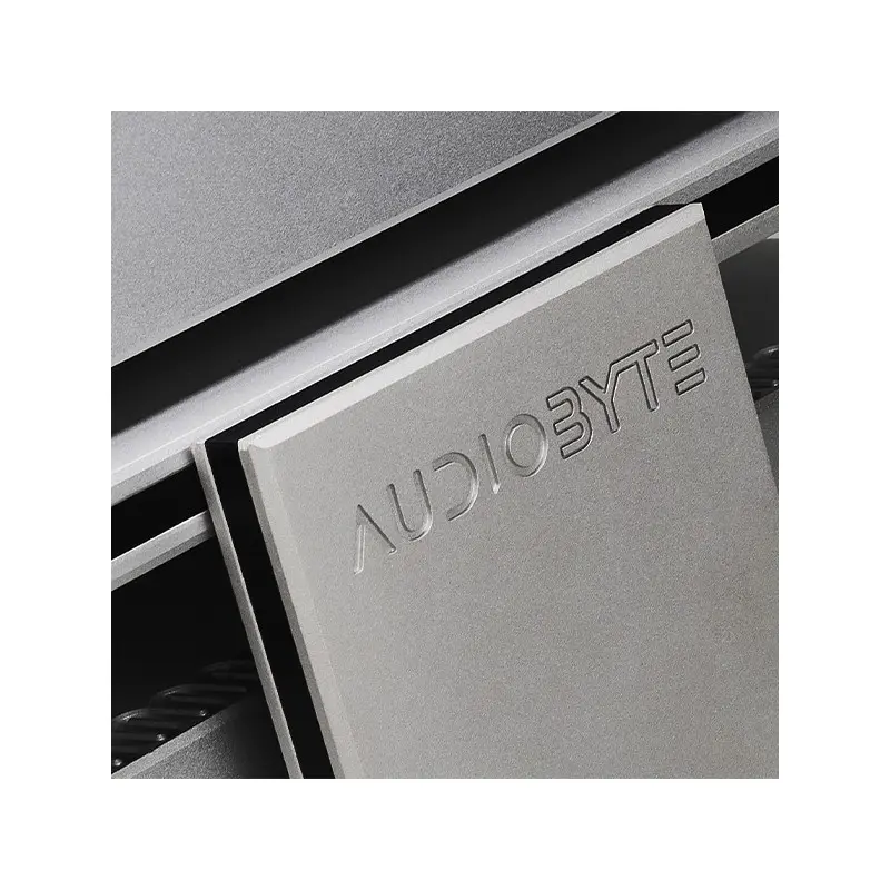 The Audiobyte SuperRACK is a premium, custom-designed three-tier rack system crafted to house and elegantly display Audiobyte's flagship components: the SuperHUB streamer, SuperVOX DAC, and SuperHEAD headphone amplifier. This rack is engineered to provide optimal support and aesthetics for these high-end audio devices